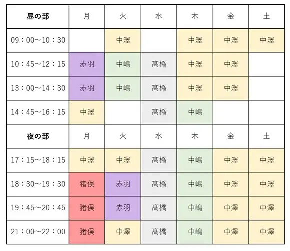中澤 21:00~22:00 残2 |